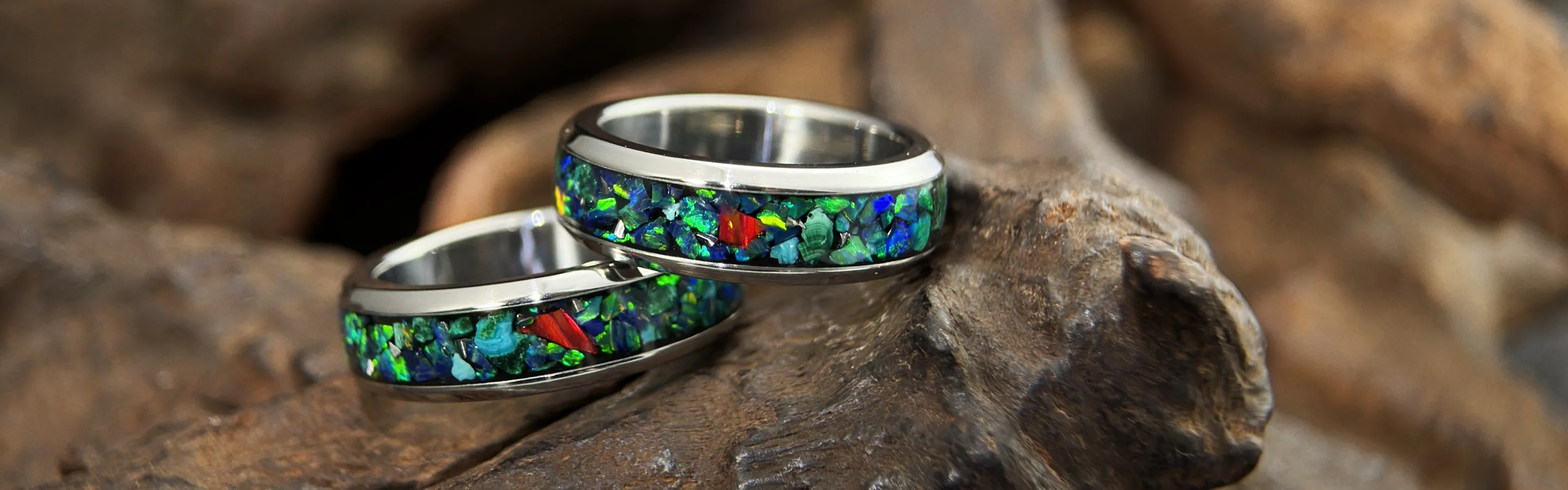 Handcrafted Rings in Damascus, Titanium & Wood